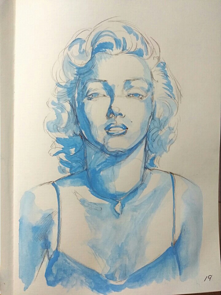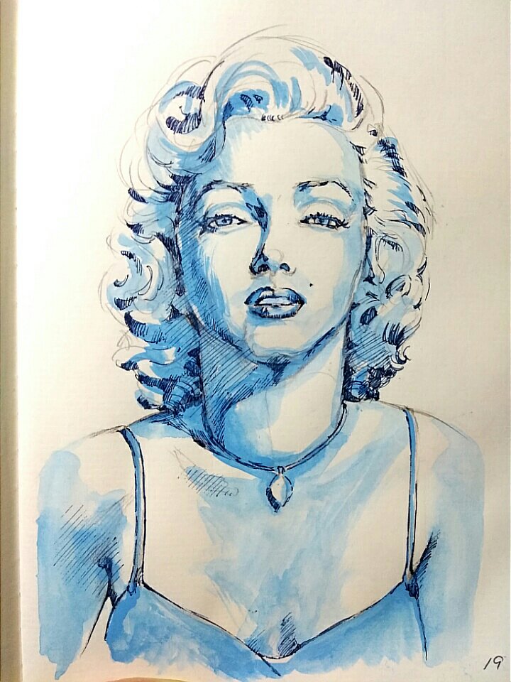 管理人が大好きなマリリン・モンローの描き方です。水彩絵の具一色とペン一本で描く方法を解説します。