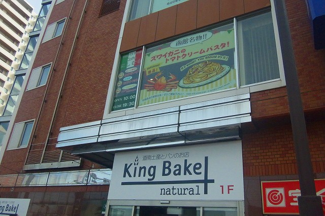 外観はこんな感じです。1階キングベークの看板がどーんと。2階のカフェ・ニシムラも健在です。