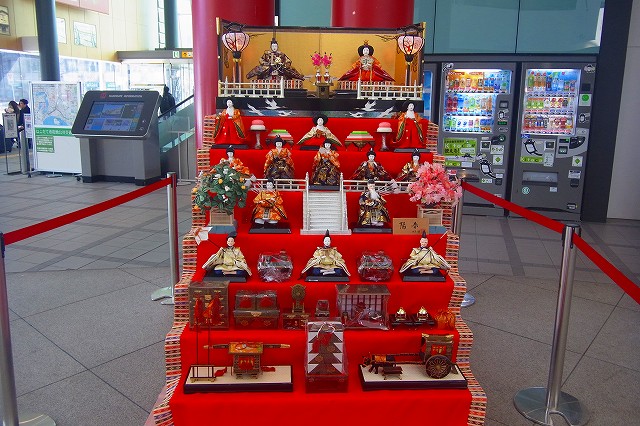 函館駅構内には、雛人形が飾られていました。