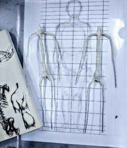 ワイヤーによる骨組みを2体ぶん作りました。