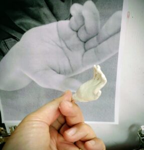 手は、自分の手を撮影して参考にしながら制作しました。